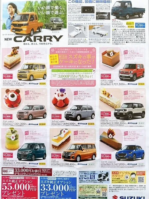 ◎スズキの軽乗用車・登録車の新車ご成約で、スズキ純正オプション55000円分プレゼント!